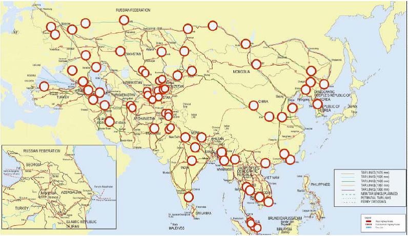 [20], ligando-se à rede ferroviária pan-europeia em vários pontos, oferecendo ligações a grandes portos asiáticos e europeus, potenciando significativamente o acesso a estes por parte de Estados sem litoral marítimo, em conjugação com a rede de auto-estradas asiáticas
