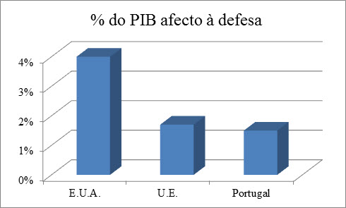 De qualquer maneira, apesar do esforço de consolidação da segurança e defesa europeia, continua a persistir um notório desequilíbrio entre as suas vertentes económica, política e militar. Na realidade, a maioria dos observadores tem apontado o facto da UE se comportar como um gigante em termos económicos (a UE passou a ser, a partir de 2007, a maior economia do Mundo, ultrapassando os EUA) e como um anão em termos militares, sendo que o desempenho político está a meio caminho entre essas duas realidades. Um claro indicador do nanismo militar apontado à UE é a percentagem do PIB afecto à defesa. Atente-se que, enquanto os EUA gastam anualmente cerca de 4% do PIB na defesa, os países da UE gastam, em média, apenas cerca de 1,7% do PIB, com Portugal a situar-se em 1,5% a 1,6% do PIB4.