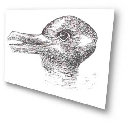 Damos como exemplo a figura 1 que procura ilustrar este fenómeno sobre uma imagem (Alegoria de Kuhn). Algumas pessoas acham que ela representa um pato. Outras acham que representa um coelho. Ambas têm razão. De facto, a mesma imagem representa as duas coisas. No entanto, quem vê nela uma das coisas, não consegue ver a outra. Quando estamos prisioneiros de um paradigma, dificilmente conseguimos aceitar outro paradigma que compita com ele. Só se fizermos um esforço para nos situarmos no outro paradigma é que, então, subitamente, passaremos a ver as coisas de uma forma completamente diferente.