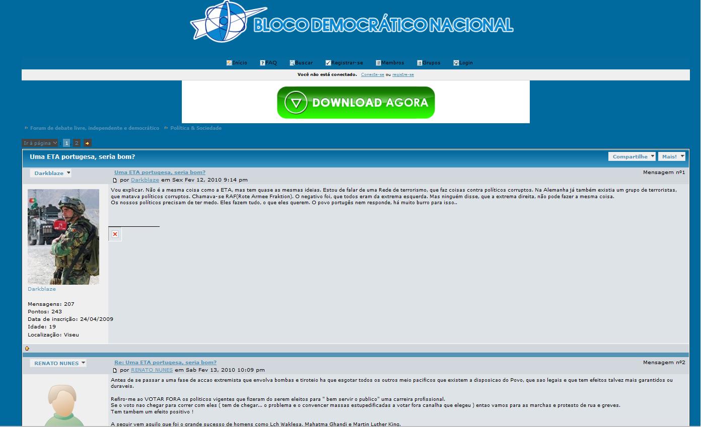 95 Ainda antes da entrada na GLLP/GLRP e erguerem colunas da Camelot, José Manuel Ferreira e Júlio Prata, para ganharem influências, ainda tentaram criar a revista Sinergias Europeias (1994) onde formam a corrente nacional-comunista, misturando termos e linguagem da esquerda e direita radicais e cuja ideologia defende abertamente a violência revolucionária e promove a interconexão dos desejos e necessidades morais, políticas e económicas de libertação nacional e de socialização dos meios de produção em favor dos próprios produtores: os operários e o proletariado em geral, camponeses, pequenos fabricantes, comerciantes e prestadores de serviços. Os nacionais-comunistas costumam lembrar o maior líder guerrilheiro do Brasil, Carlos Marighella, i.e.: «O conceito teórico pelo qual nos guiamos é o de que a acção faz a vanguarda». «O que une os revolucionários brasileiros é desencadear a acção e a acção é a guerrilha». Contudo, a revista teve vida efémera com apenas dois números (1994). O comité de redacção era composto, entre outros, por Alexandre Peters - luso-alemão com ligações à extrema-direita alemã (NPD); José Manuel Ferreira - empresário, patrocinador da FN e do movimento nacional-comunista; e Júlio Prata - principal “ideólogo” nacional-comunista. As distintas opiniões e sensibilidades ideológicas existentes neste comité conduziram este projecto editorial à rápida extinção (in Metapedia).