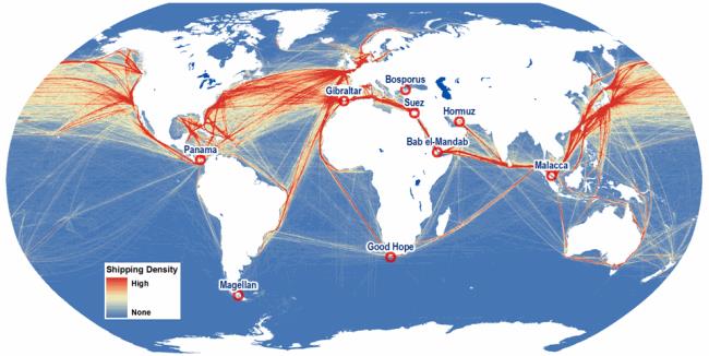 Map 4 - Global sea trade routes and choke points[13].
