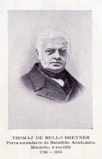 [17] cf. Thomaz de Mello Breyner (* Lisboa a 3-6-1786, † na rua do Carvalho, Mercês, Lisboa em casa de seu sobrinho o Marquês de Ficalho, a 11-10-1854, sem geração, sendo sepultado no cemitério dos Prazeres), Enfermeiro-mor e Provedor da Santa Casa da Misericórdia de Lisboa, Fidalgo Cavaleiro da Casa Real, Gentil-Homem da Câmara da Rainha D. Maria II, Cavaleiro da Ordem de S. João de Jerusalém, Oficial da Ordem da Torre-e-Espada, Comendador das Ordens de Ernesto Pio de Saxe e de Leopoldo da Bélgica, Deputado da Junta do Tabaco, Conselheiro de Embaixada junto da Corte de França; fez parte do exército liberal, sendo um dos 7500 bravos que desembarcou no Mindelo, a 8-7-1832; recebeu das mãos do Imperador do Brasil, D. Pedro IV, a primeira bandeira azul e branca a ser implantada no continente, bordada por D. Maria II, Rainha de Portugal, in Fernando de Castro da Silva Canedo, op. cit., vol. III, p. 355 e 4º. Conde de Mafra, op. cit., p. 22.