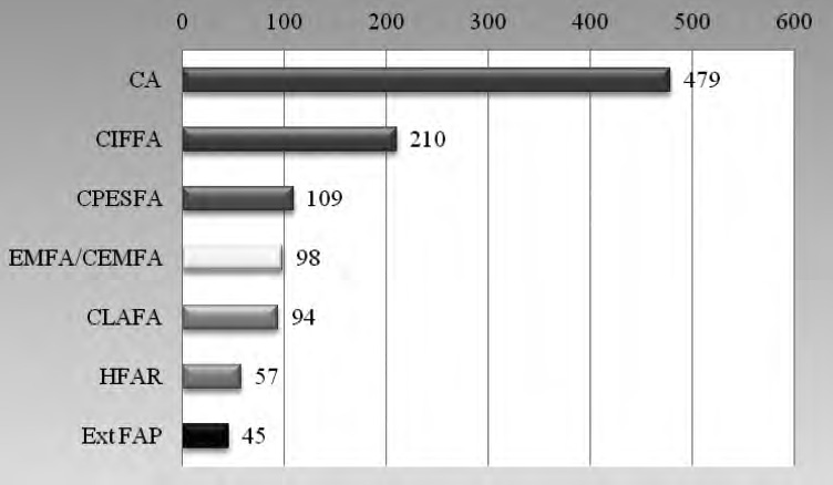 Neste ponto apresenta-se a “fotografia social” que atualmente se pode obturar à realidade feminina na FAP, segundo os dados apurados em 16 de novembro de 2012, do Sistema de Informação de Gestão da Área de Pessoal (SIGAP) da FAP. Deste modo, as mulheres militares distribuem-se em 1021 prontas para o serviço (439 dos QP e 582 do RC) e 99 em formação (84 dos QP e 15 do RC), totalizando 1120, num universo de 6638 militares, conforme se apresenta: