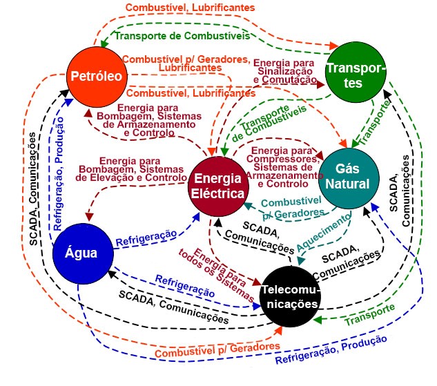 Seja através de ligação directa, proximidade geográfica, ou relações cibernéticas, é inquestionável que as IC não estão isoladas e que as suas interacções criam uma complexa rede de relações, dependências e interdependências que extravasam o âmbito das IC para afectar toda a sociedade (Pederson et al., 2006). Em suma, as relações de interdependência são uma intricada estrutura de múltiplos níveis onde as influências se fazem sentir em todos os sectores da sociedade e do Estado, do domínio público ao privado, e do âmbito regional à escala global.