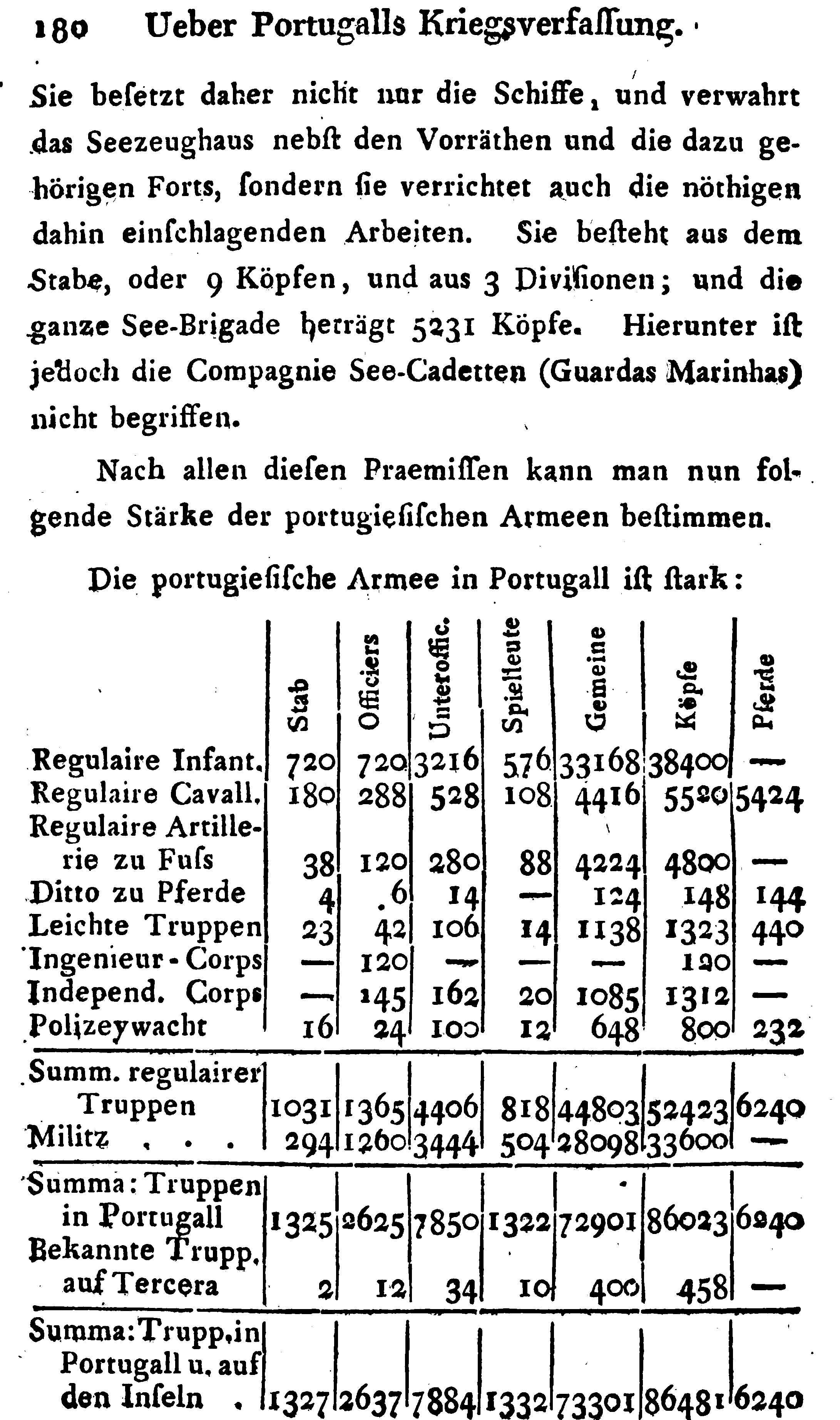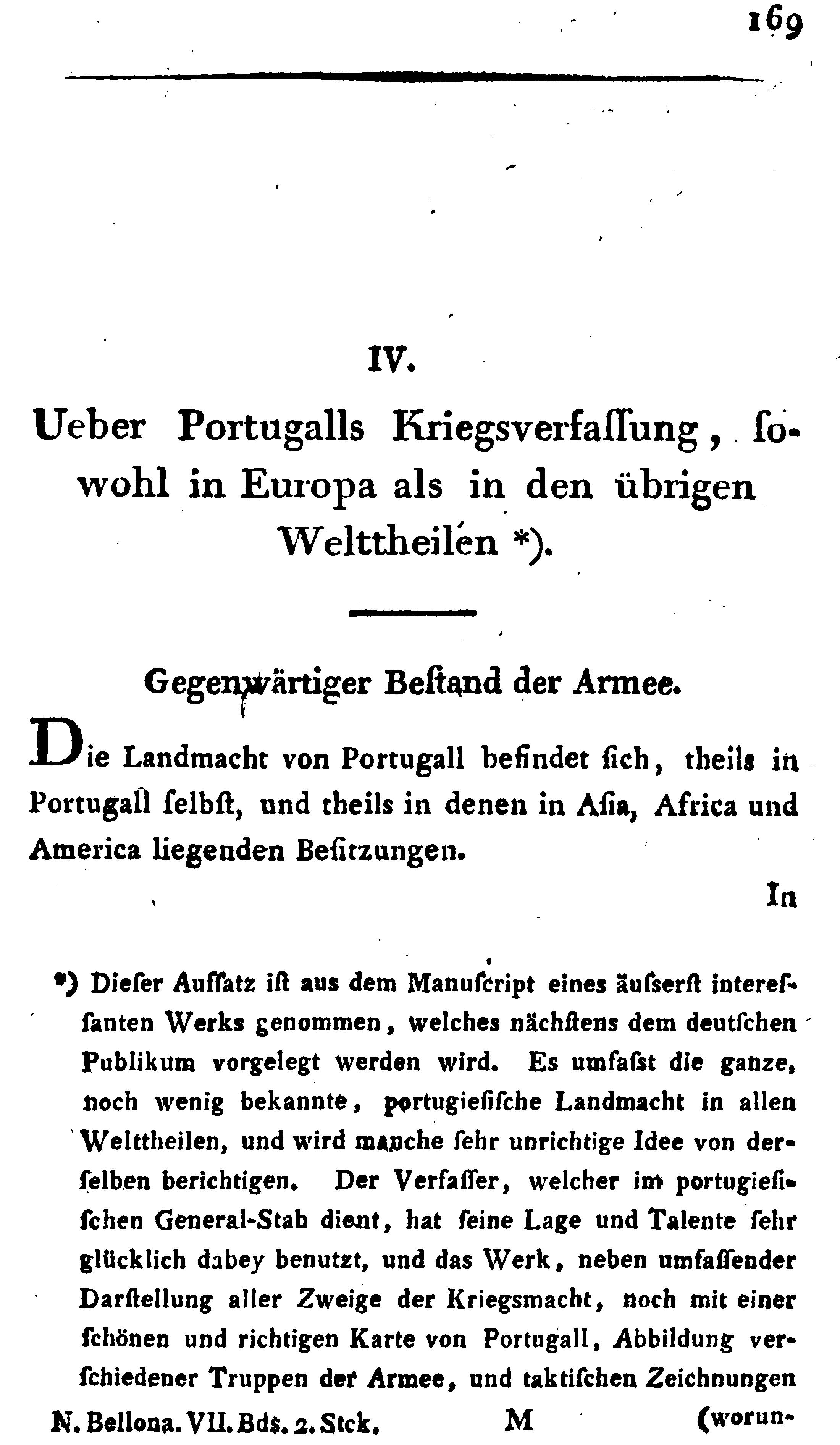 Ueber Portugalls Kriegsverfassung, sowohl in Europa als in den übrigen Welttheilen” [Sobre o estado militar de Portugal, tanto na Europa, como nas restantes partes do mundo] in N.[eue] Bellona, 7 Bd., 1804, 2 St., pp. 169 ss. e 3 St. pp.271 ss.